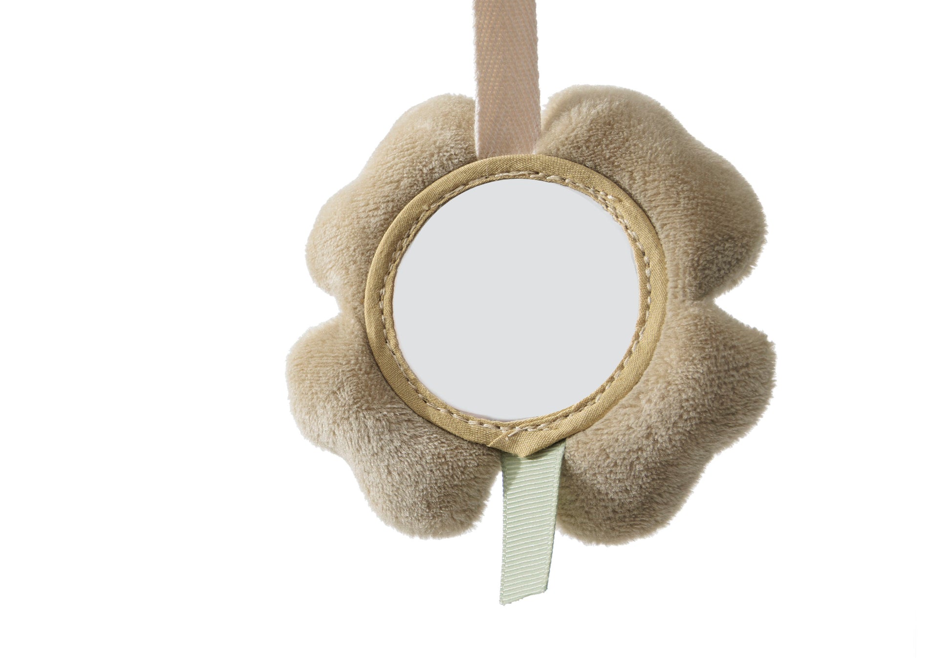 Cet adorable jouet de poussette Tiny Park est parfait pour divertir bébé en balade. Il contient un petit chien, un chat et un trèfle à quatre feuilles avec un mini miroir intégré. Les petits grelots diffusent un son apaisant – un jouet idéal à emporter partout !