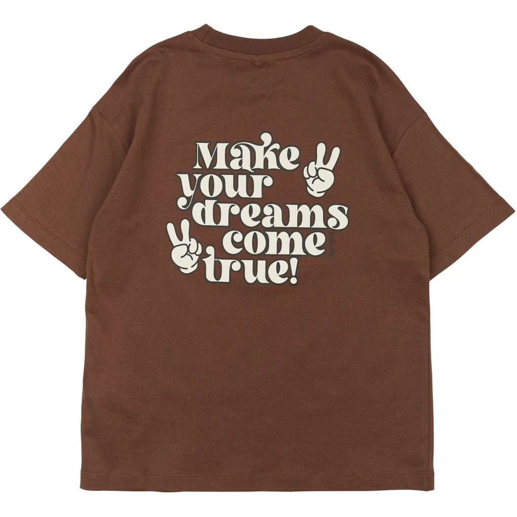 Ce t-shirt oversize de THE NEW allie un design épuré et décontracté. Le devant arbore un petit signe de paix, tandis que le dos est orné du texte « Make your dreams come true » et de deux signes de paix. Idéal pour une tenue décontractée, il véhicule un message positif. Disponible en deux coloris.